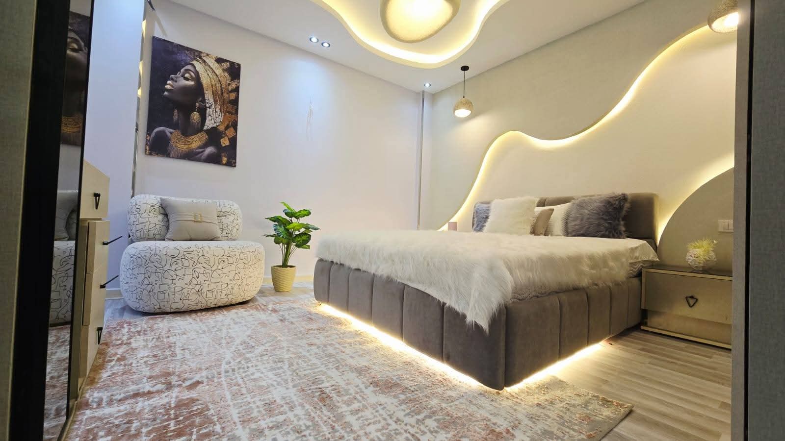 • شقه للبيع ليڤينج/٣غرف نوم /٢حمام /مطبخ   تشطيب سوبر لوكس ، جيبسون بورد