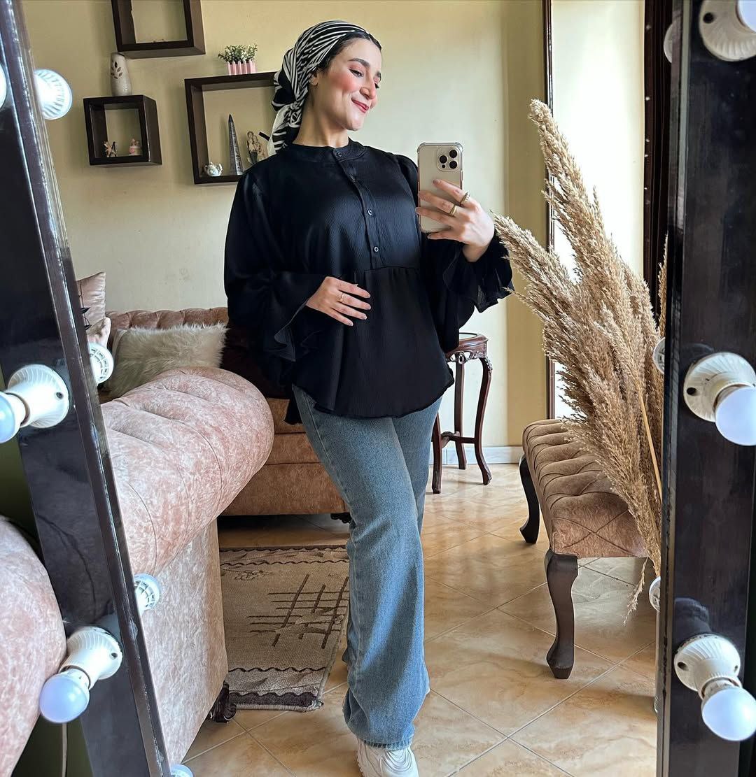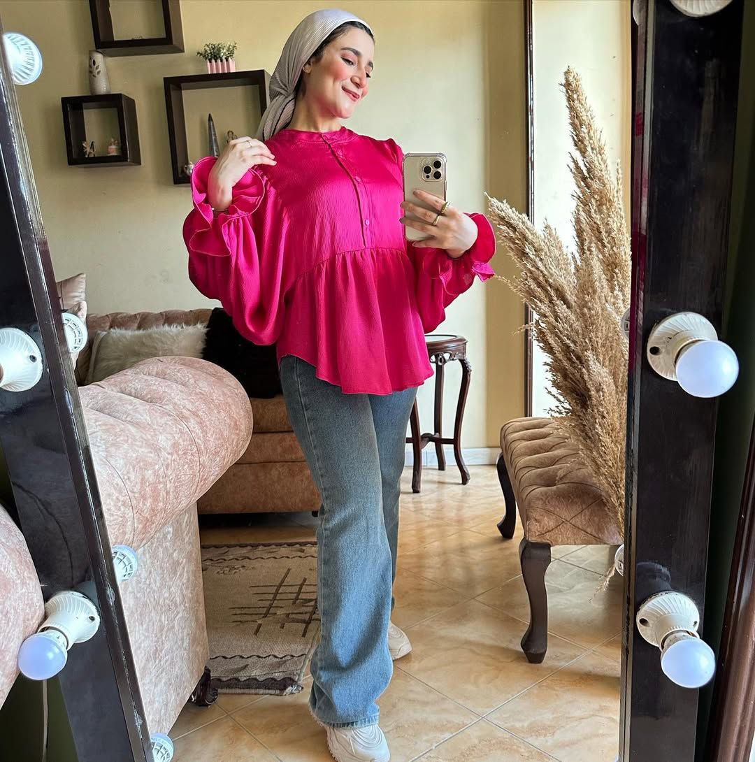 🌞 الموديل :  بلوزة ستان كم واسع