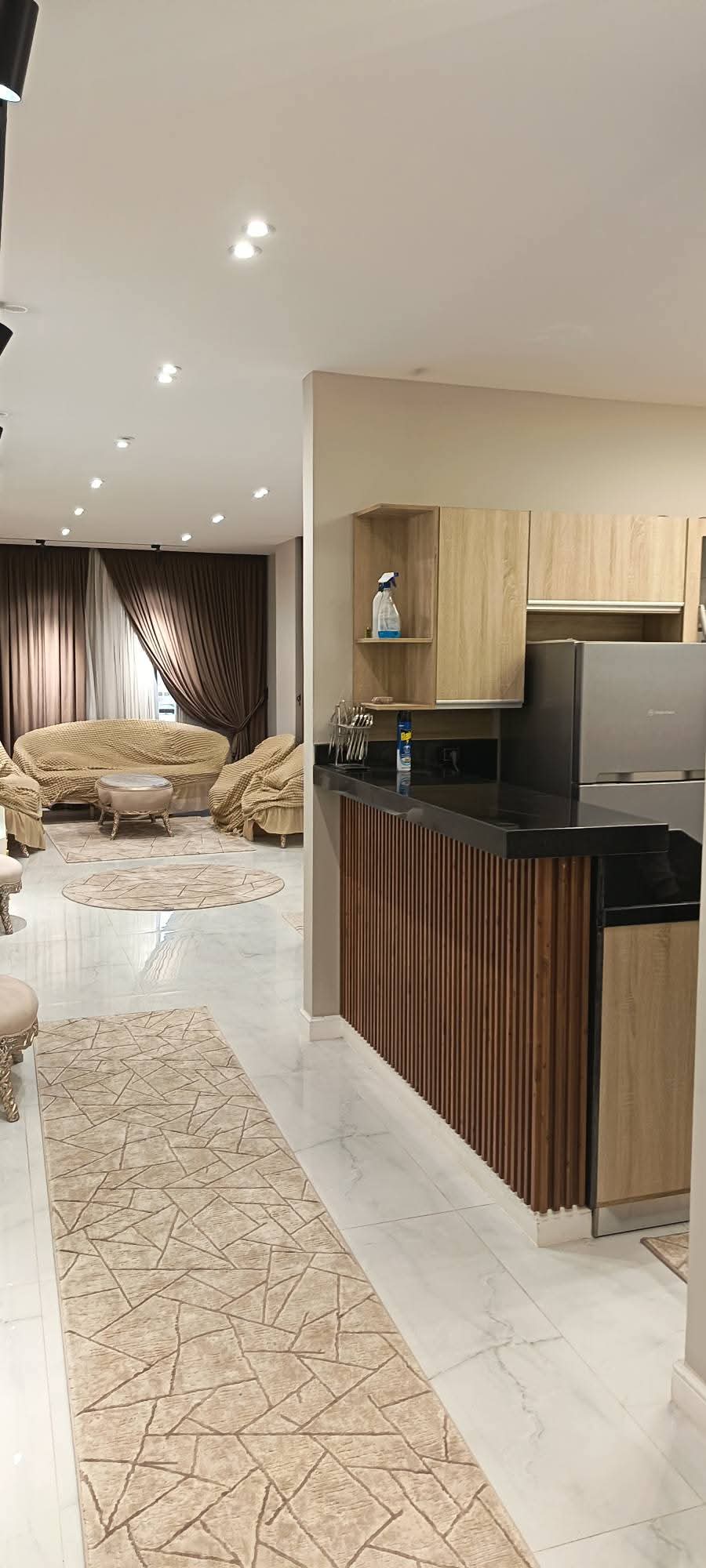 • شقه للبيع ليڤينج/٣غرف نوم /٢حمام /مطبخ   تشطيب سوبر لوكس ، جيبسون بورد