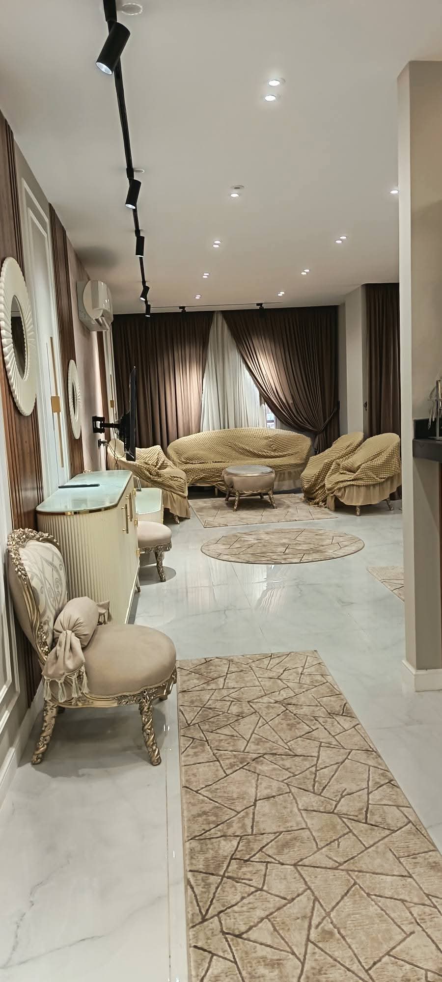 مستوى التشطيب : الترا سوبر لوكس ب اعلى الخامات " ارضيات بورسلين وأسقف جبسمبورد وإضاءة بشكل حديث و فاخرة "