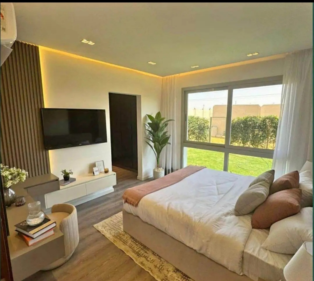الشقة مساحتها ١٥١ متر ومعاها جاردن ٧٥ متر ٣ غرف منهم واحدة ماستر