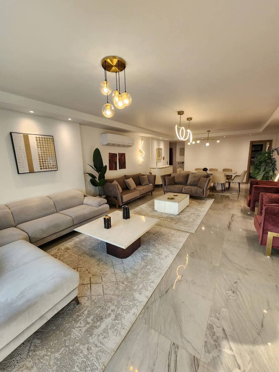 • الشقه متشطبه كلها بخامات مستورده  ومعاها ٥ تكيفات