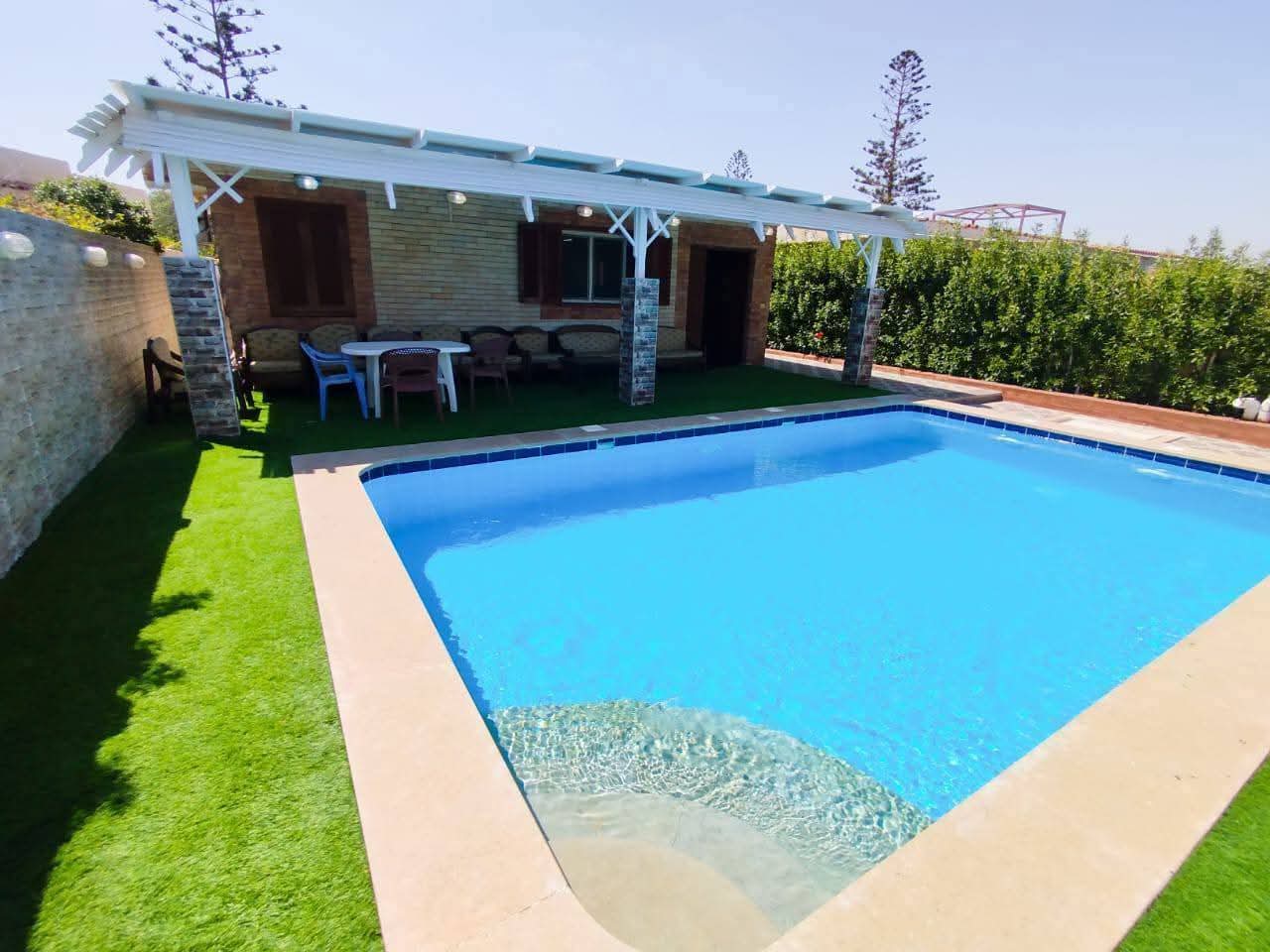 متاح للايجار شاليه ارضى مستقل 2صف بحر 3غرف نوم 3 مكيفين 3 حمام مطبخ مجهز بالكامل