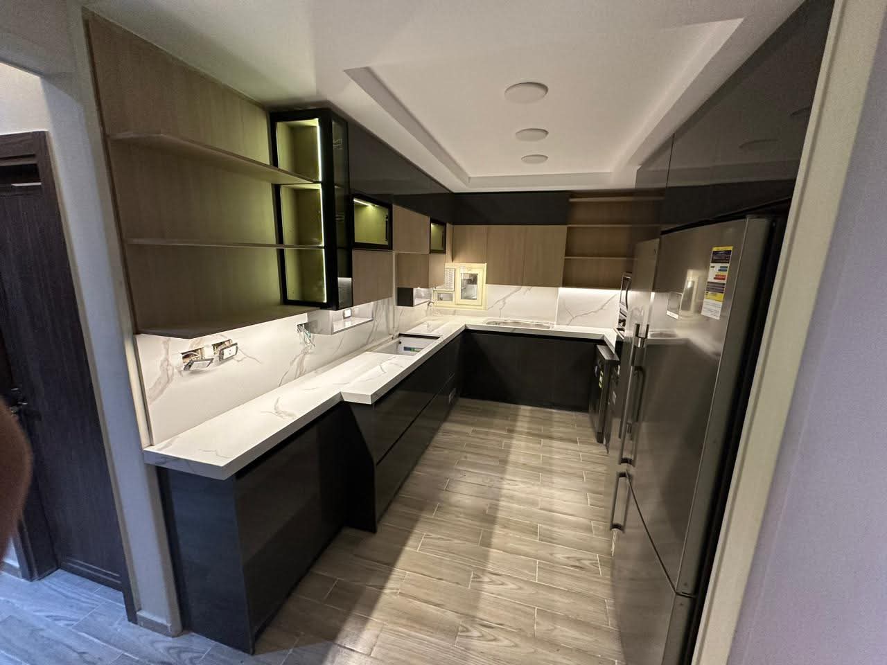 المطبخ ده مثال من شغلنا في أركان، واللي بيجمع بين التصميم العصري، التنفيذ المتقن، والجودة الأوروبية اللي بتعيش معاك سنين.