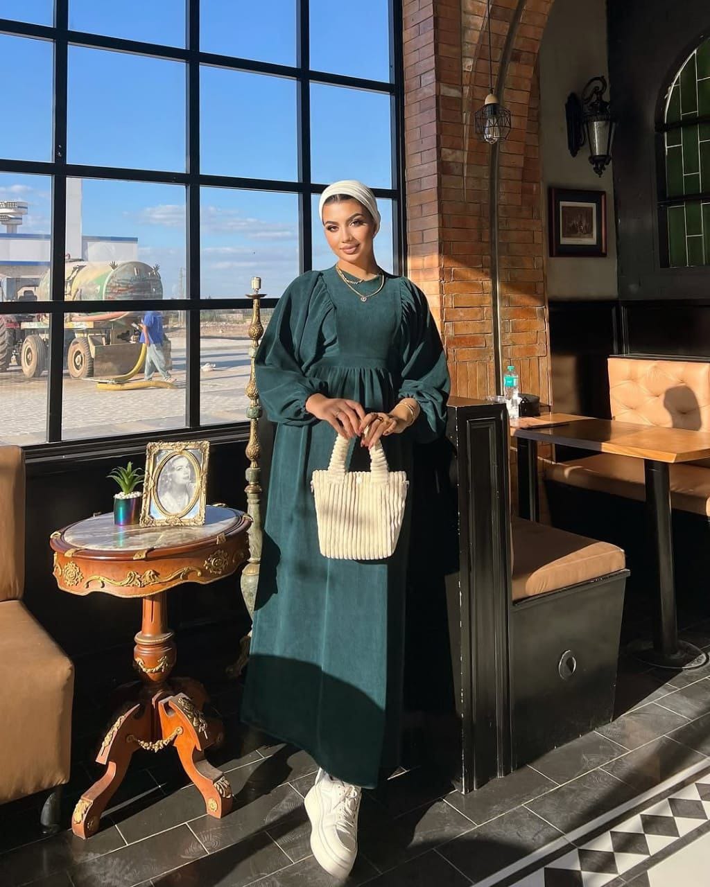 الموديل💭دريس كم واسع 🤍✨✨ الخامه💭ريب قطيفه مستورد عالى. الجودة👍✨