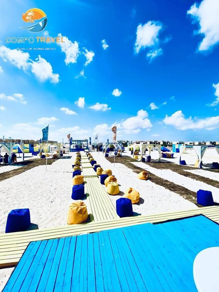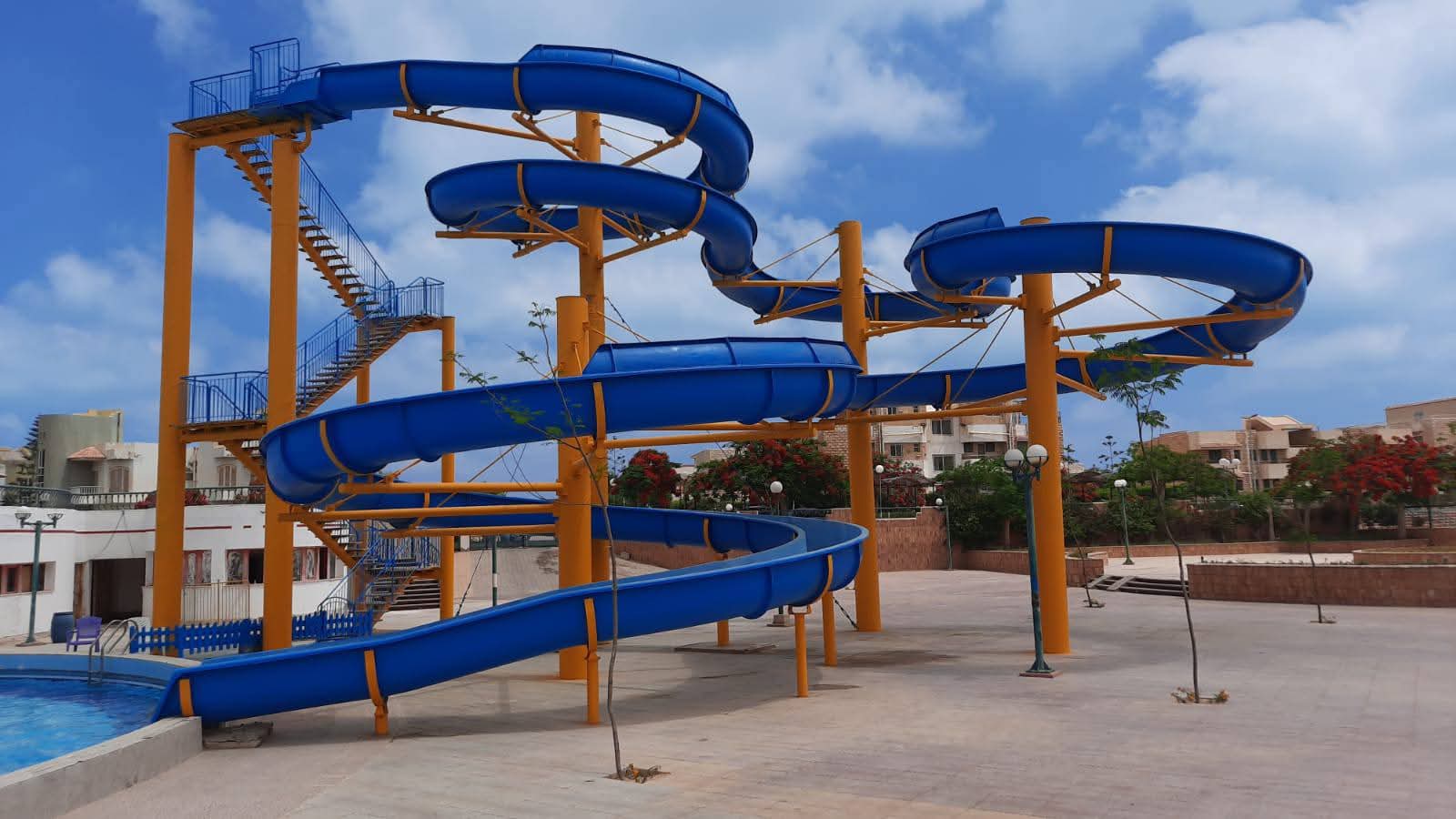 شاليه للايجار يوجد بالقرية شاطئ رملى وتأجير عجل واكوا بارك وكيدز اريا وملعب وحمام سباحة مغطاه للسيدات