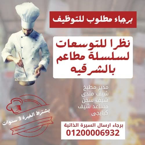 مطلوب ويتر ب مطعم بالمنصوره