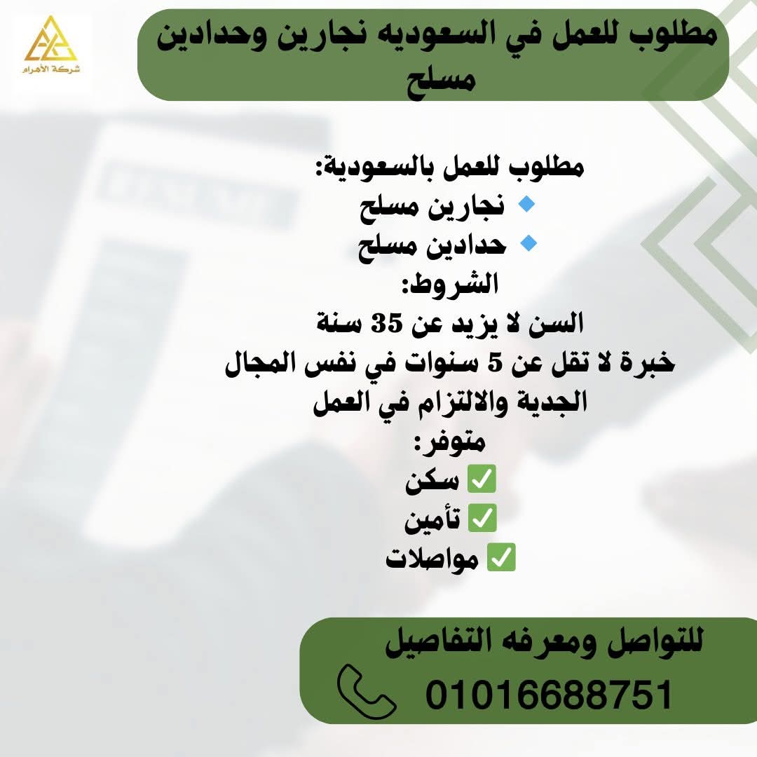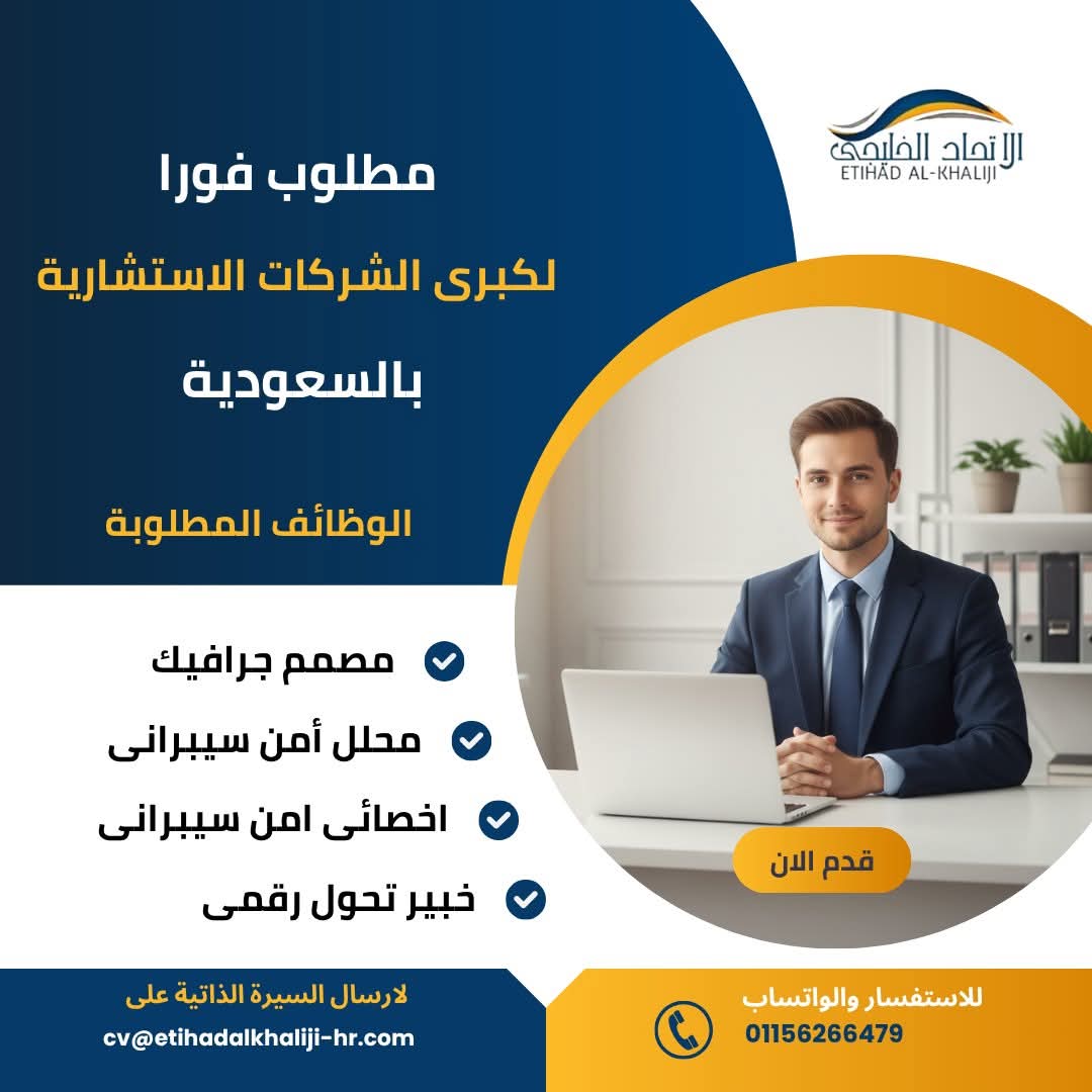 🔥 مطلوب الوظائف التالية مقابلات مباشرة مع صاحب العمل السعودي يوم السبت الموافق 17/1 بمقر الشركة