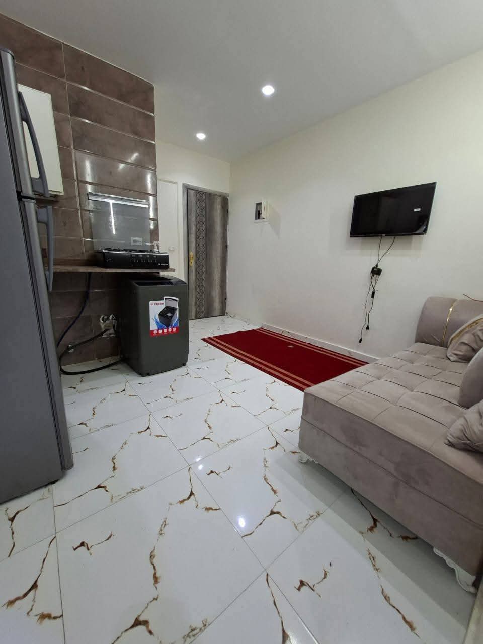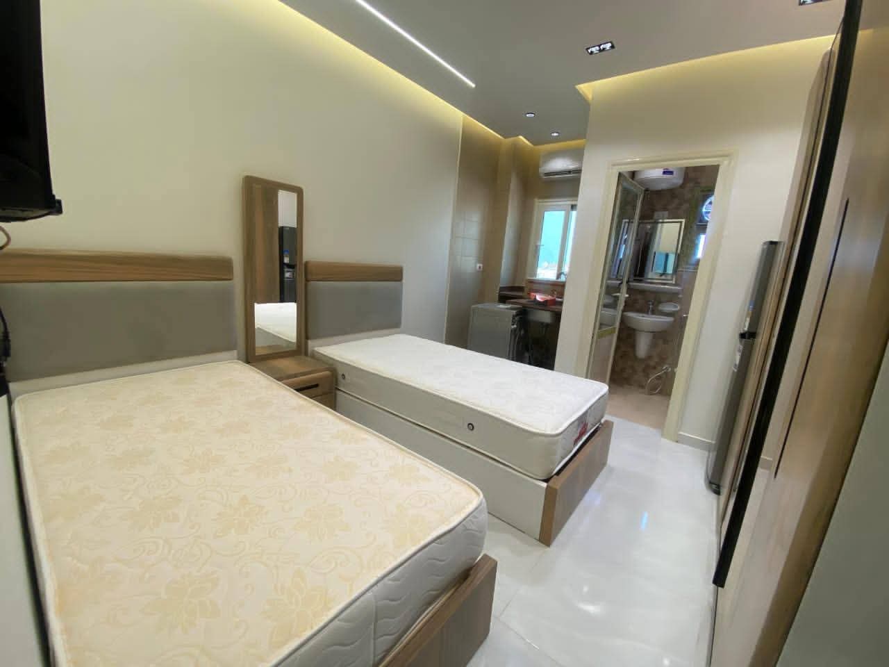 استديو #للايجار فرش مودرن غرفه وصاله دور ارضي بنات فقط حي اول مجاورة رابعه