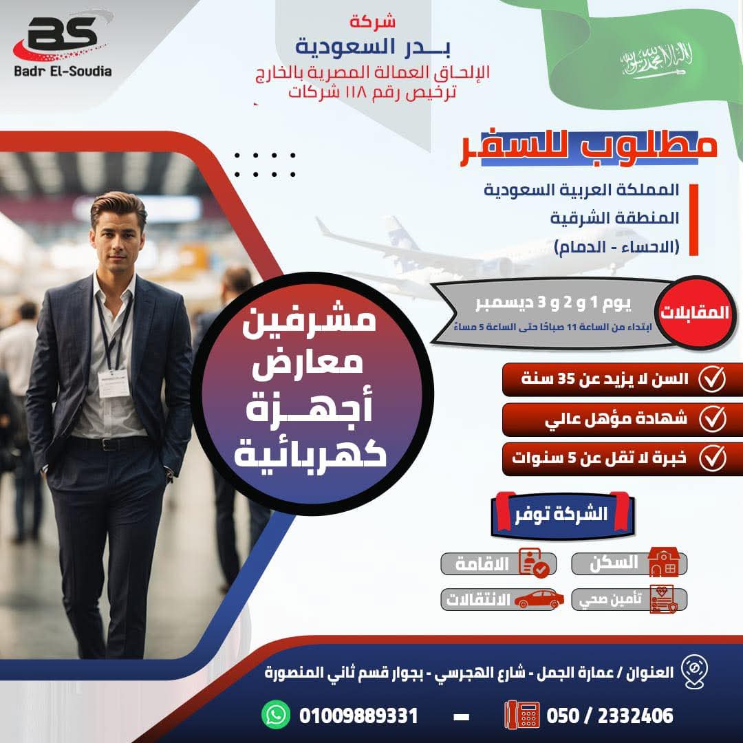 مطلوب الوظائف التالية للسعودية 🔊🔊🔊