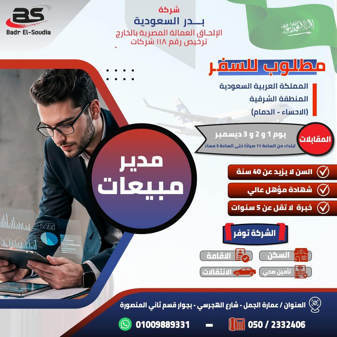 مطلوب سيلز لشركة broker عقارات يفضل من لاديه خبرة مجال السيلز والتواصل اللباقة مع العملاء مؤهل عالى