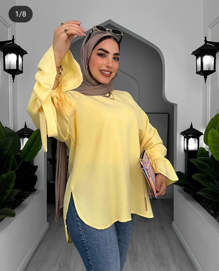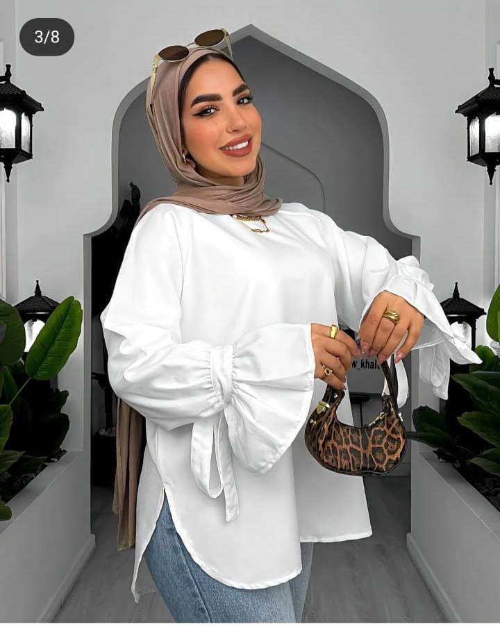الموديل 👀 🙈بلوزه ساده كم رباط  اتنين فتحه ع الجنب  وهم  تحفه اللهم بارك 🙈 💣 🌸