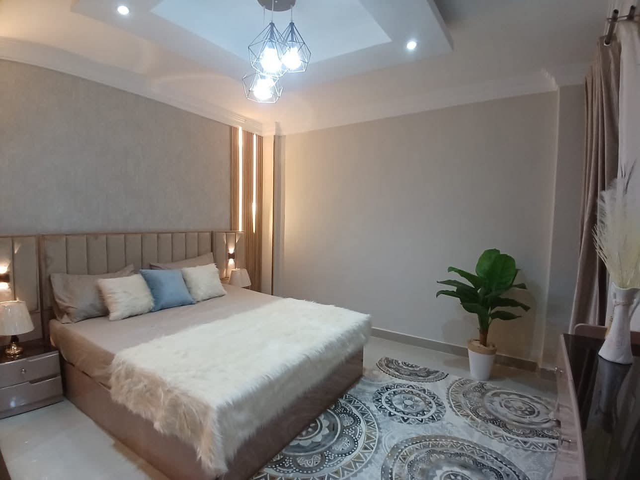 شقه للايجار مفروش بمدينتي b7 مساحه ٨٢ متر غرفتين وريسبشن فرش فندقي مكيفه بالكامل