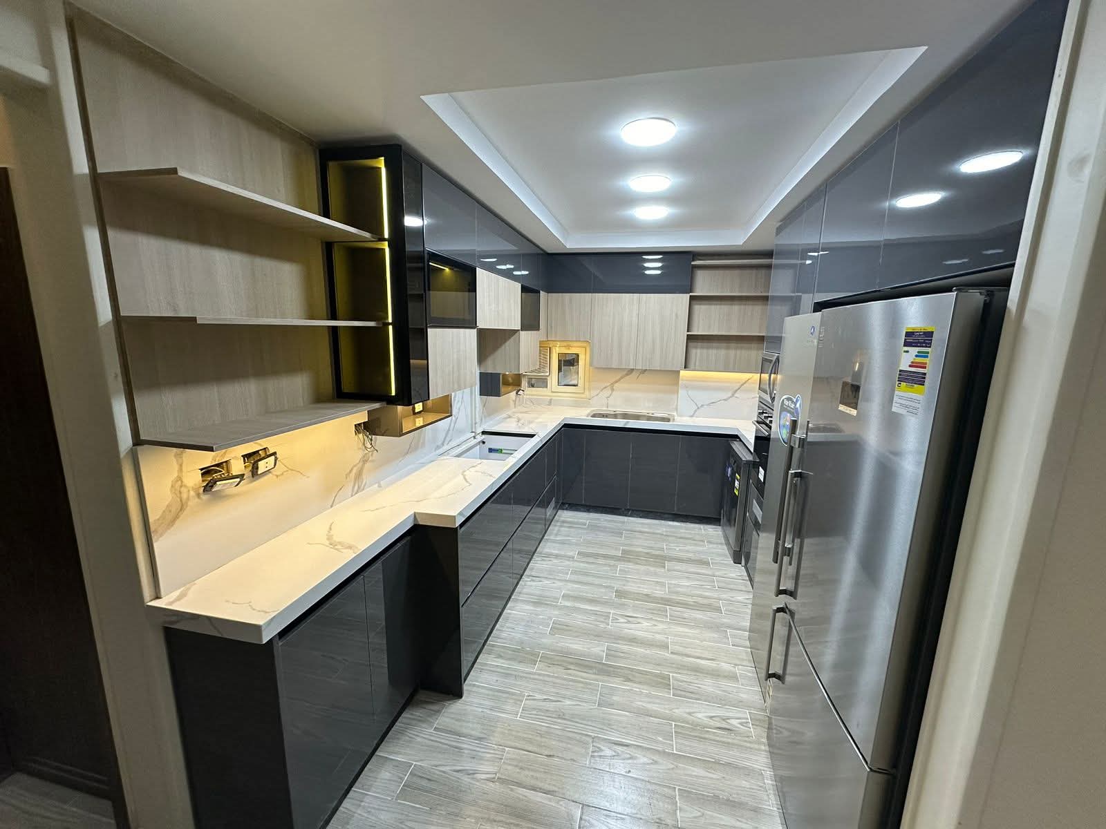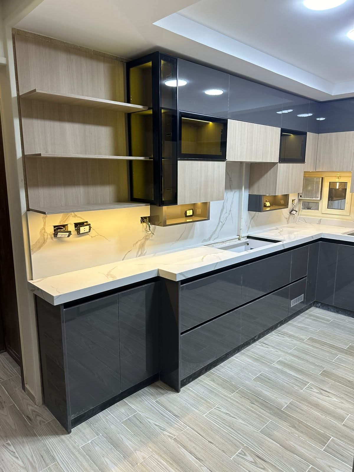 المطبخ ده مثال من شغلنا في أركان، واللي بيجمع بين التصميم العصري، التنفيذ المتقن، والجودة الأوروبية اللي بتعيش معاك سنين.