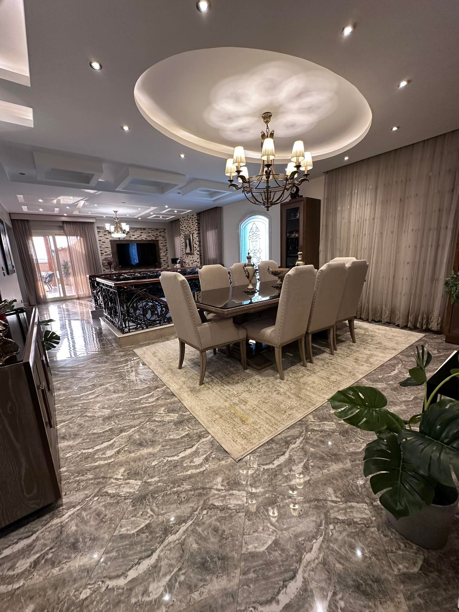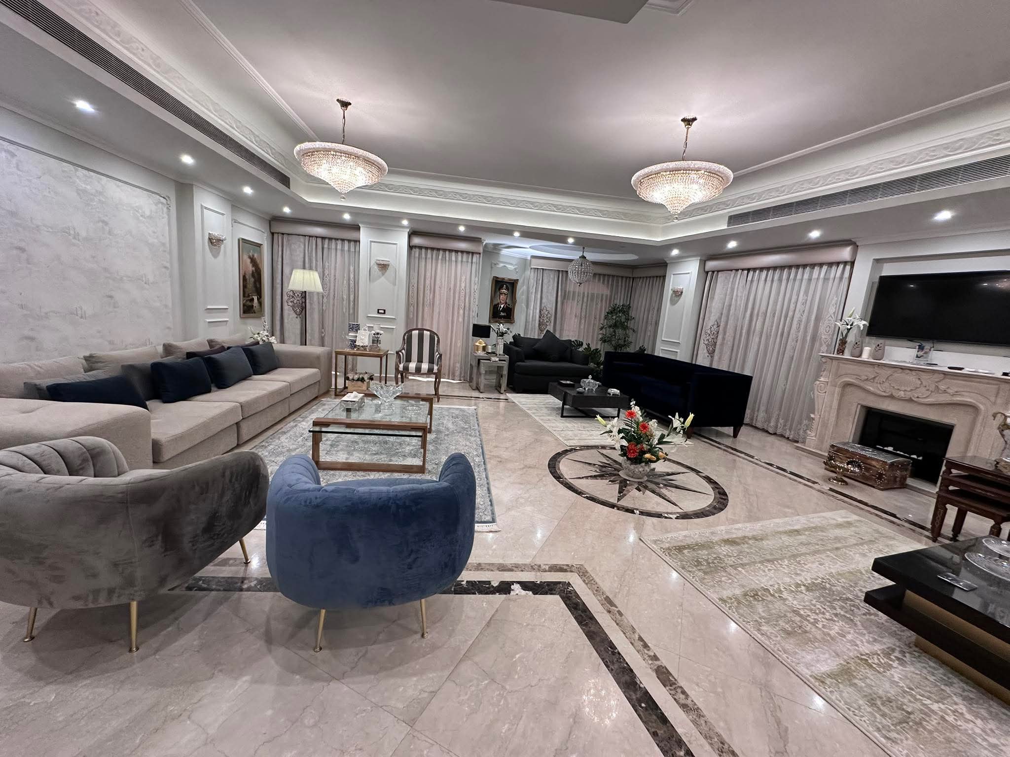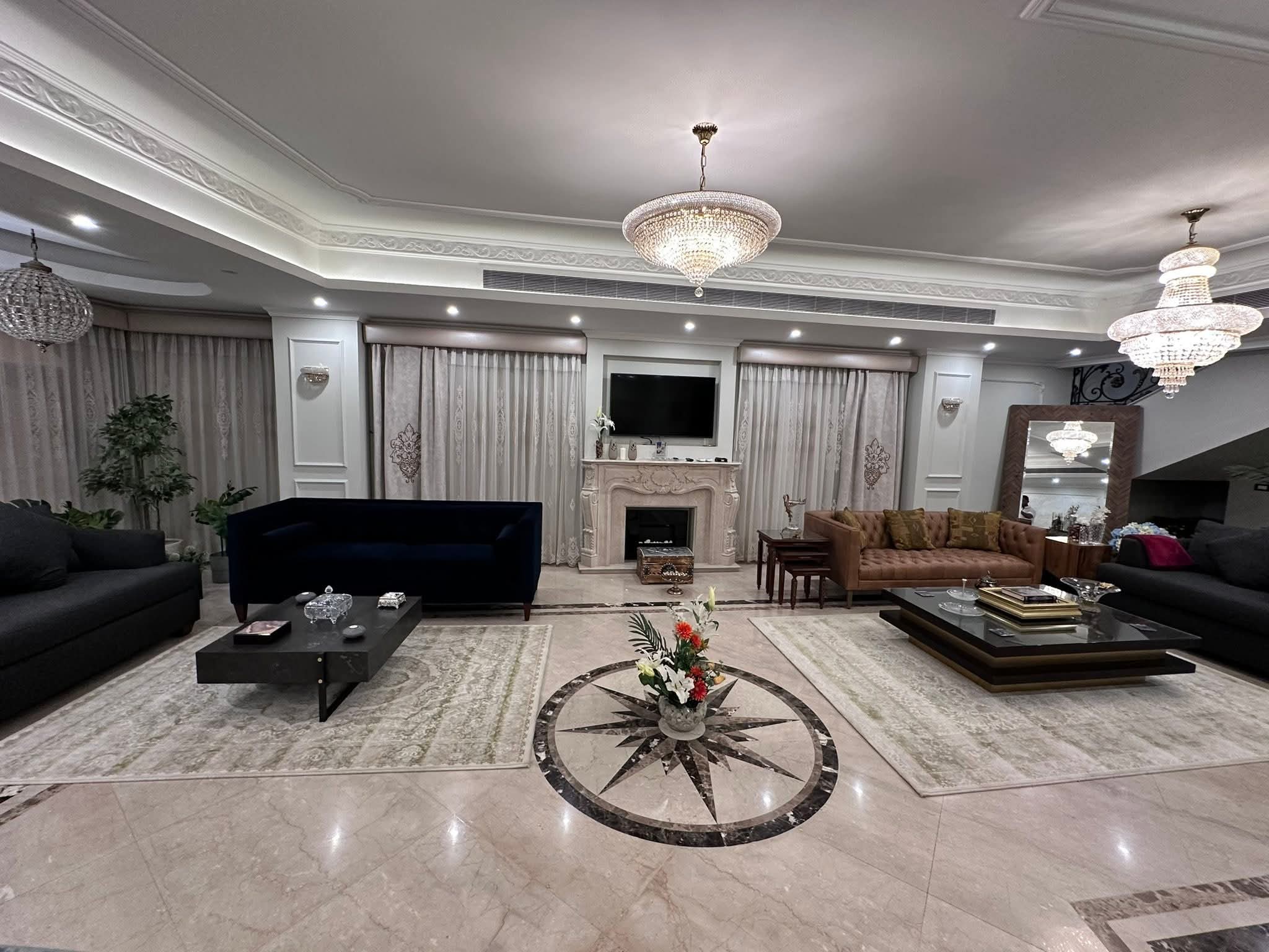 [ 5 غرف نوم منهم غرفه ماستر - 4 حمام - ريسبشن - ليفنج ـ غرفة طعام - اوفيس - روف ملحق به وحدة معدة للطعام ]