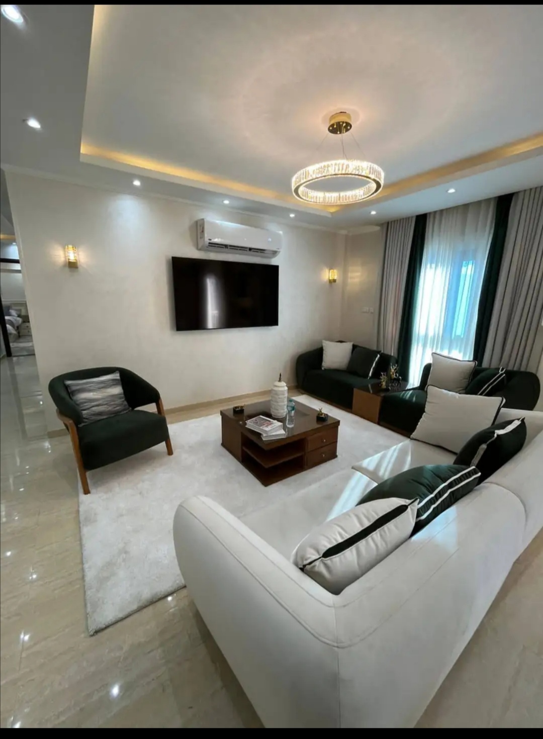 • الشقه متشطبه كلها بخامات مستورده  ومعاها ٥ تكيفات