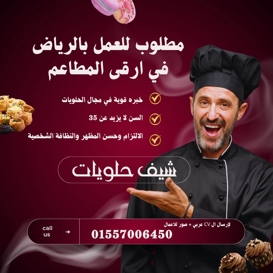 مطلوب للتعيين بسلسلة مطاعم بالتجمع و الشيخ زايد الوظائف الاتية كابتن
