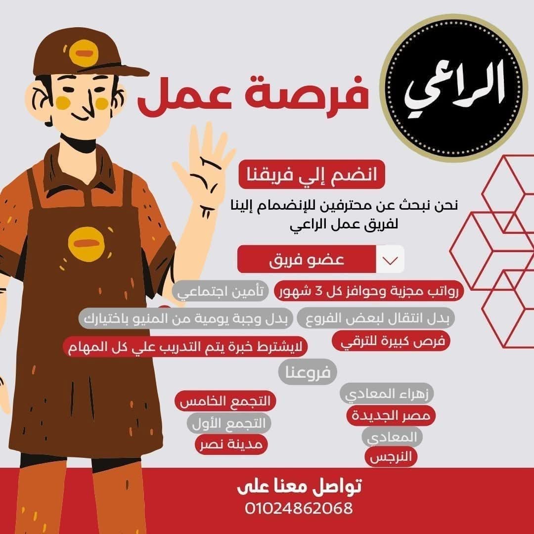 🔴 مطلوب لمجموعه مطاعم في التجمع الاول-التجمع الخامس-مدينة نصر-مصر الجديدة